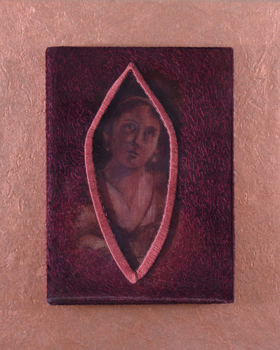 Layered with symbolism, these three pieces are lovely, pristine objects. Each piece is constructed of layers of embroidery stretched over painted images of three historically notable female artists; Artemisia Gentileschi (Italian born 1593), Camille Claudel (French born 1864), and Emily Carr (Canadian born 1871). Both layers of stitching are on toile. What is different about stitching on this fabric is that the front of the stitches and the back of the stitches are both visible, leaving no room to hide anything. Thus, limiting the type of stitching that can be executed seeing as the underneath and the surface are both in sight. Symbolically while Rust was working, there was a constant reminder that she had to get back to the border’s edge each time she trailed off toward the center and that she had to be able to get back to the edge prior to the thread running out. The under-stitching suggests passionate energy underneath the more reserved female surface. In terms color, the inside layer (though a little difficult to distinguish in the final pieces), are more warm in temperature and the outside layers more cool.